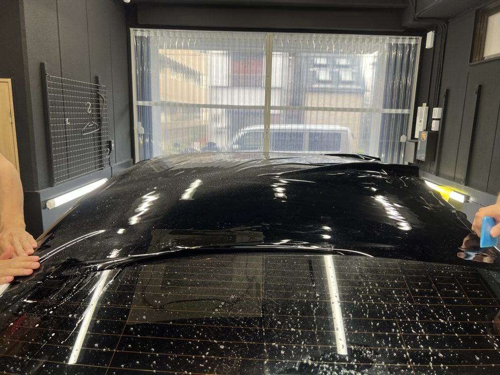 フロント周りは飛び石や傷からの保護。ルーフはカラーチェンジと傷からの保護で施工。