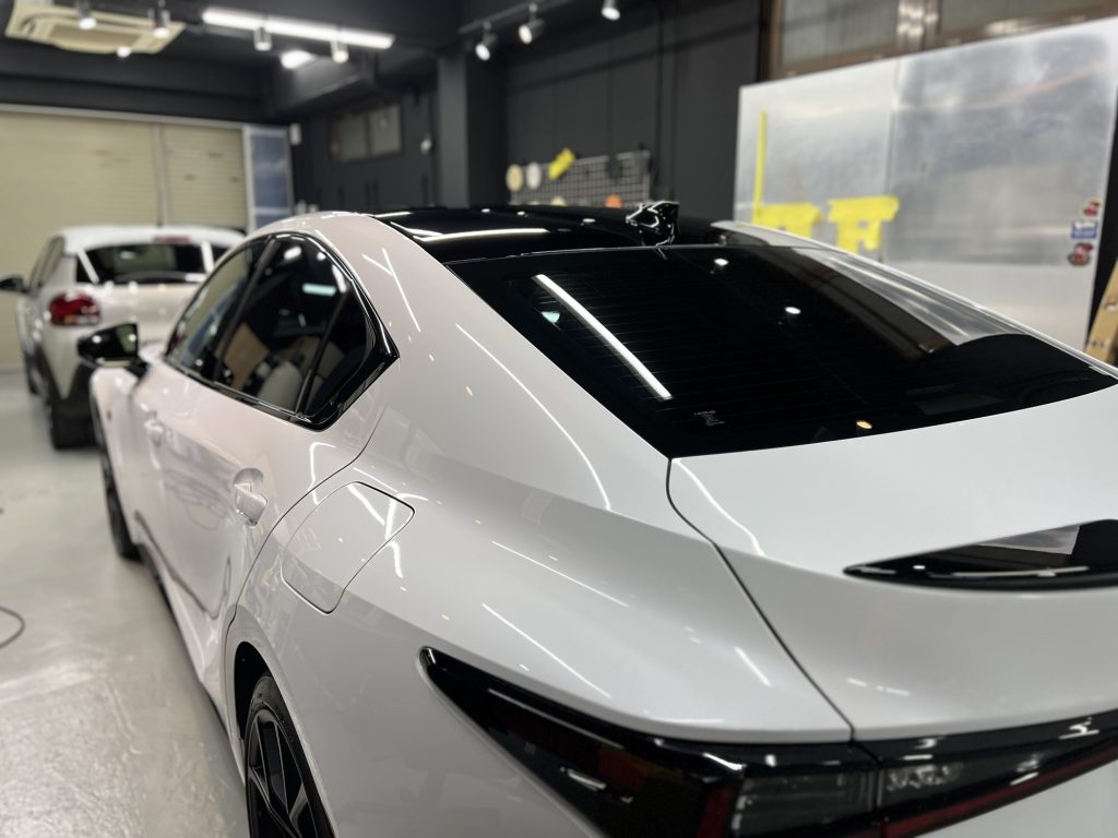 透明プロテクションフィルムは、XPELのプロテクションフィルムを使用。ルーフのブラック部分他黒い箇所には、KSGカラープロテクションフィルムを使用してます。